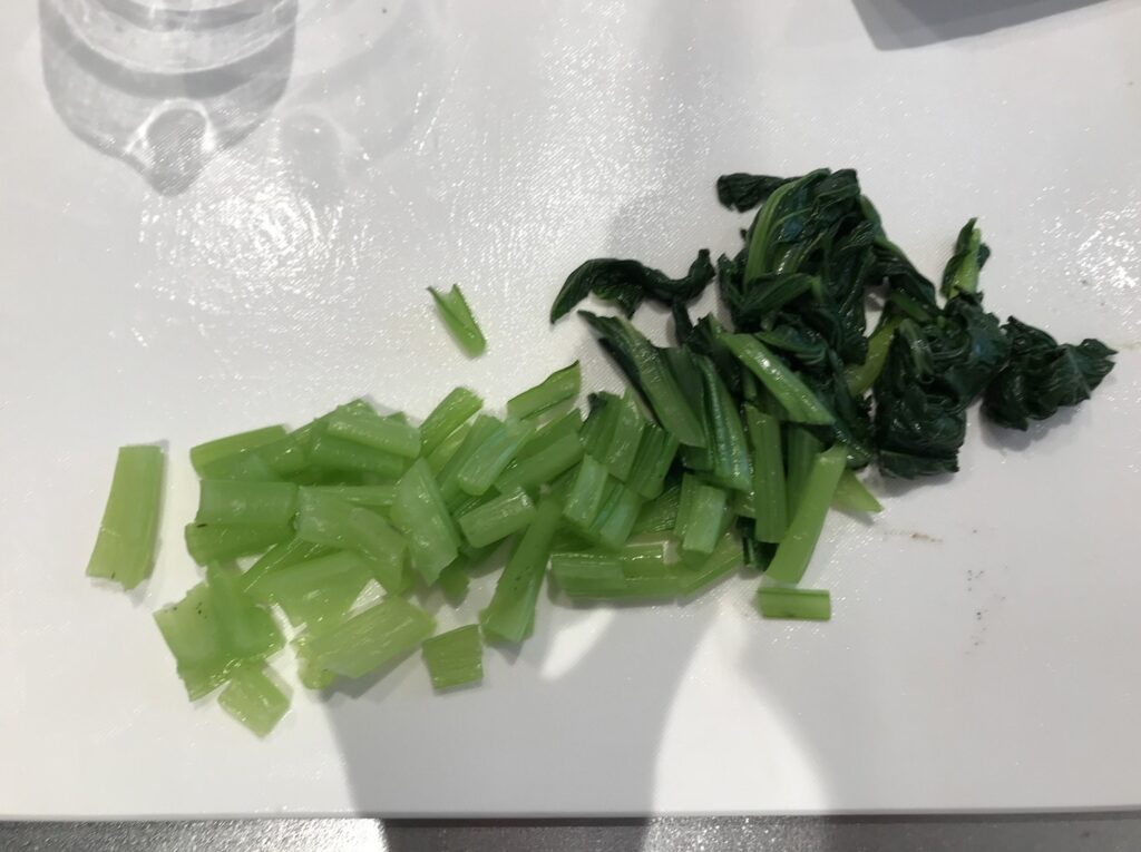②冷水で冷やして水気を切り、細かく刻む。
