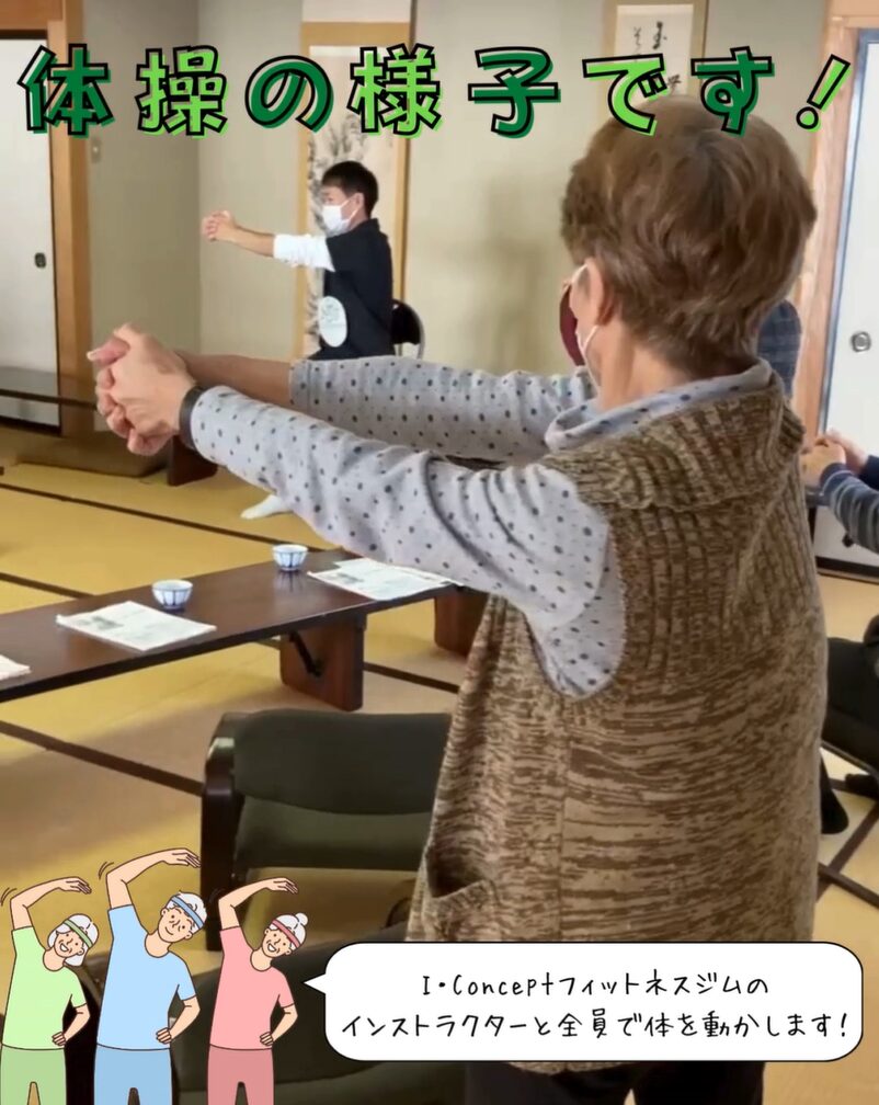 フィットネスジムのインストラクターと一緒に体操をして、寒い日でも体がポカポカに🌞
