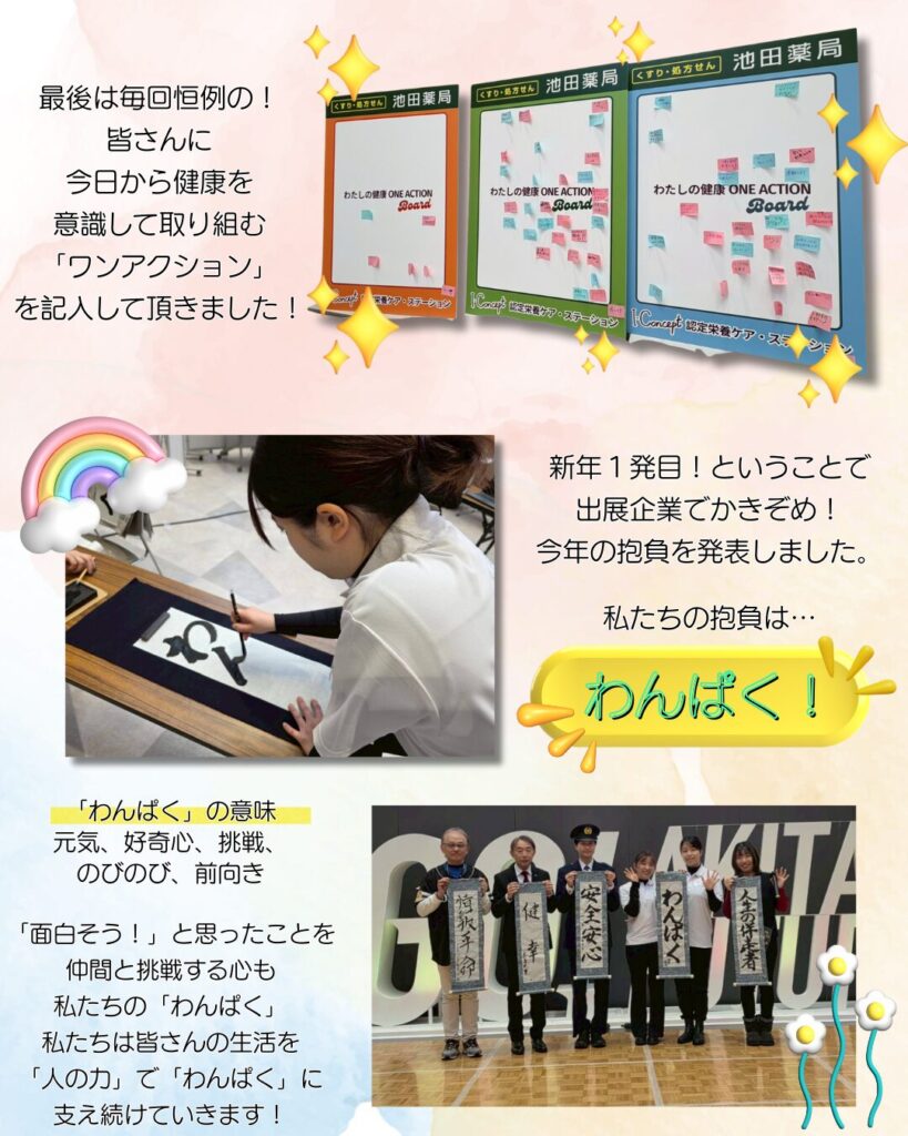 各ブースの企業テーマということで、私たちは【わんぱく】に全世代健康に気を配りつつ、日々を楽しもう!ということで、このテーマにしました♪