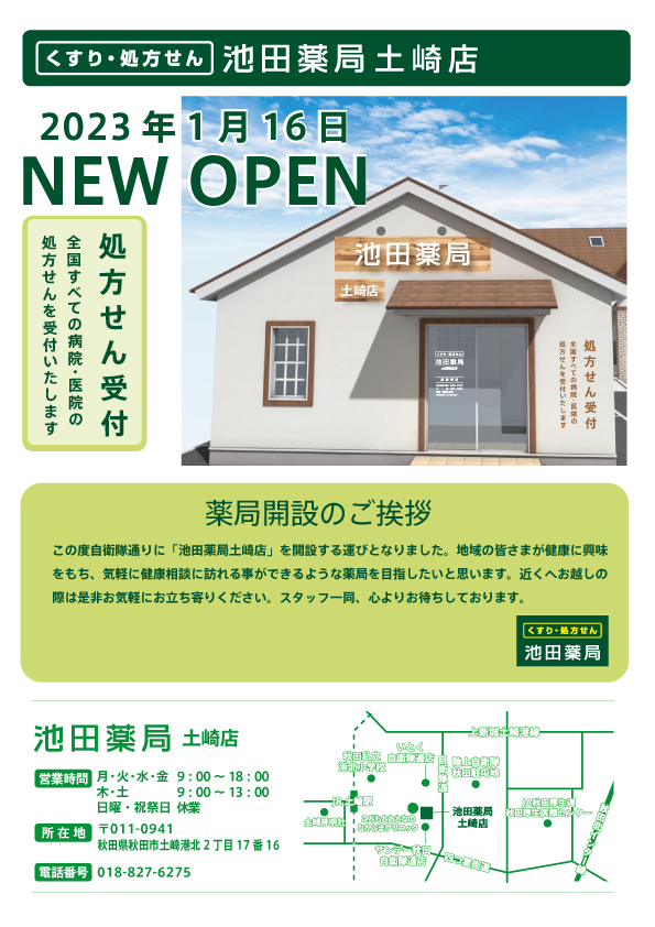 1/16 秋田市土崎に「池田薬局 土崎店」がオープンいたしました!